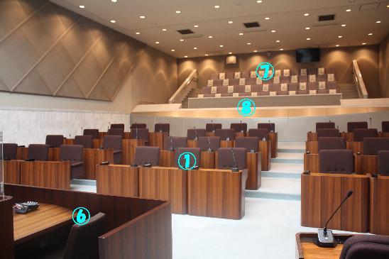 厚木市民の代表として選ばれた議員が座ります。 - 議長席(ぎちょうせき)