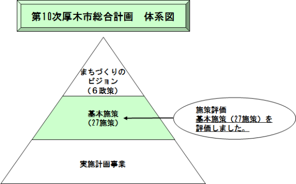 本市の行政運営を総合的かつ計画的に進めるための最高指針である第10次厚木市総合計画の目標に対する達成状況などについて検証を行い、より一層の市民満足度の向上や効果的・効率的な行政運営を推進することなどを目的として実施しています。