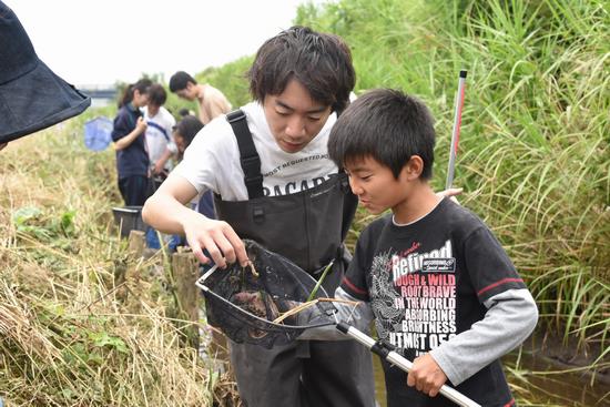 身近な川の水質や生物を調べる体験を通して、河川環境の大切さを学ぶ講座について、学生の皆さんも講師となっています。