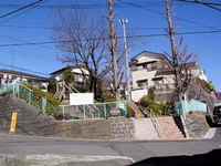 高台の敷地内に2本の高い木が立っている、はせしみず公園の写真 拡大画像 (JPEG: 38.2KB)