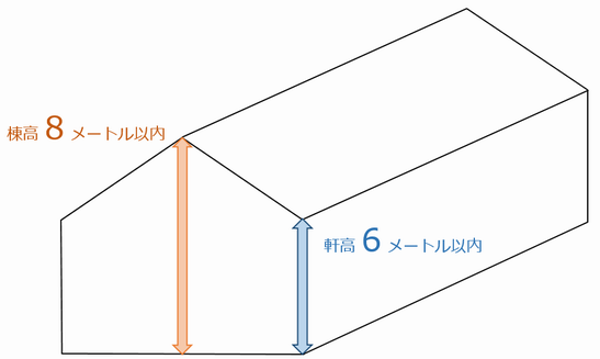 - 棟高が8メートル以内、軒高が6メートル以内であること