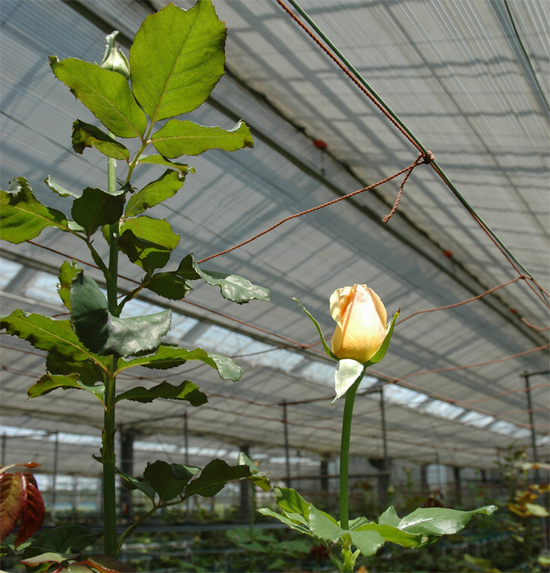 温室に咲くバラの花
