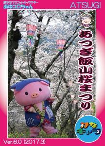 「あつぎ飯山桜まつり」の文字と桜が咲いている木々の間に立っているあゆコロちゃんのカード 拡大画像 (JPEG: 111.8KB)